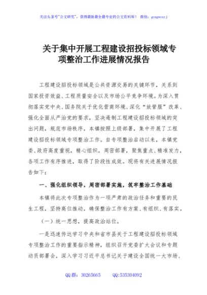 / 关于集中开展工程建设招投标领域专项整治工作进展情况报告