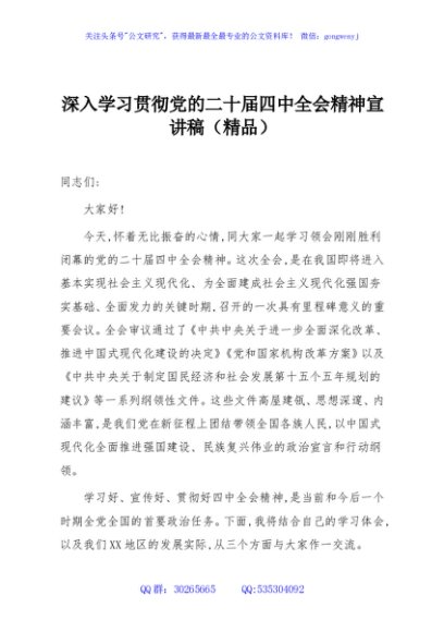 / 深入学习贯彻党的二十届四中全会精神宣讲稿(精品)