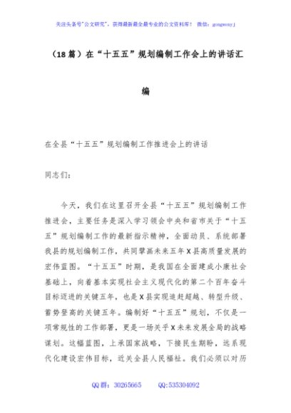 / (18篇)在“十五五”规划编制工作会上的讲话汇编