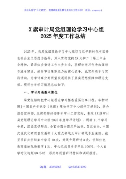 / X旗审计局党组理论学习中心组2025年度工作总结