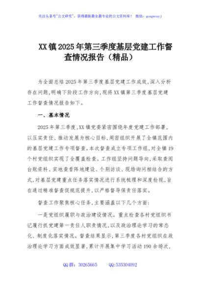 / XX镇2025年第三季度基层党建工作督查情况报告(精品)