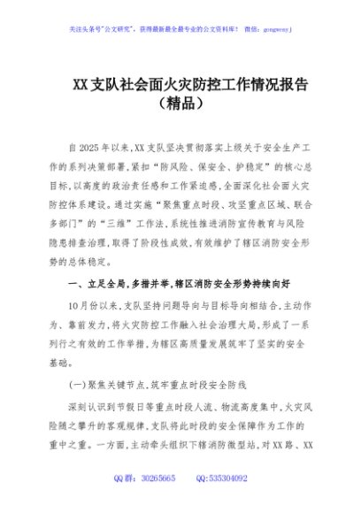 / XX支队社会面火灾防控工作情况报告(精品)