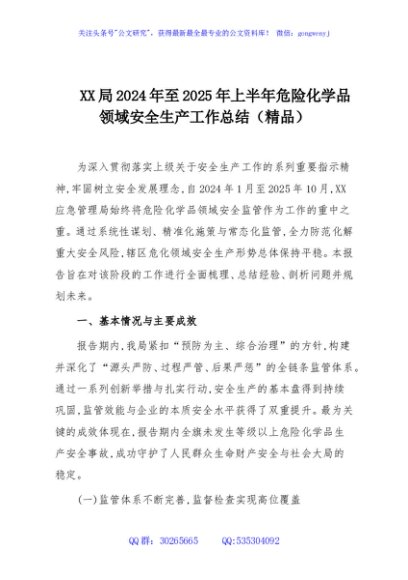 / XX局2024年至2025年上半年危险化学品领域安全生产工作总结(精品)