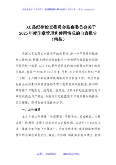 / XX县纪律检查委员会监察委员会关于2025年度印章管理和使用情况的自查报告(精品)