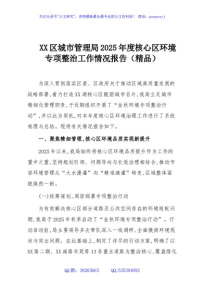 / XX区城市管理局2025年度核心区环境专项整治工作情况报告(精品)