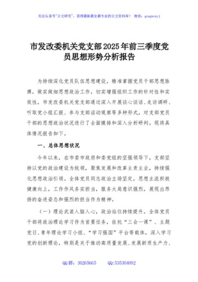 / 市发改委机关党支部2025年前三季度党员思想形势分析报告