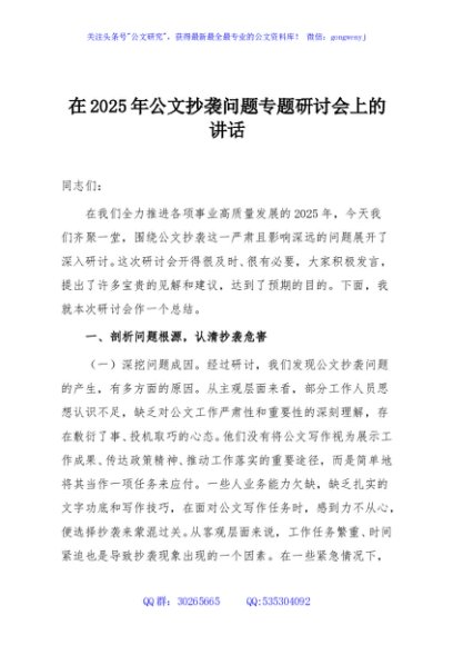 / 在2025年公文抄袭问题专题研讨会上的讲话