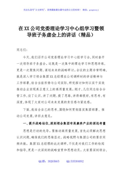 / 在XX公司党委理论学习中心组学习暨领导班子务虚会上的讲话(精品)