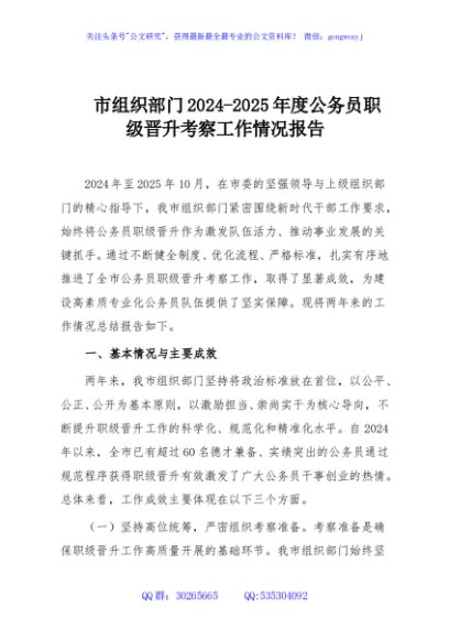 / 市组织部门2024-2025年度公务员职级晋升考察工作情况报告