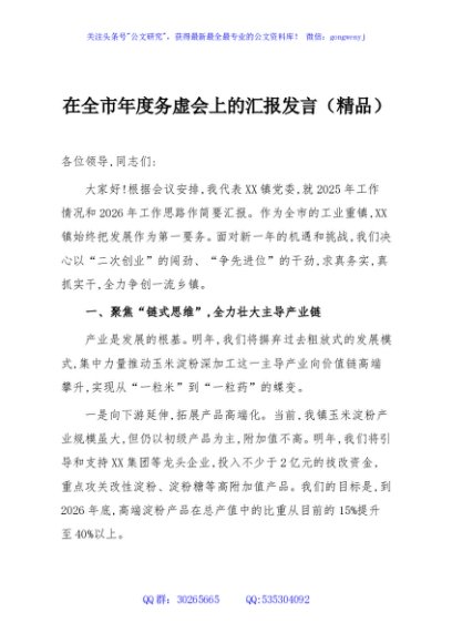 / 在全市年度务虚会上的汇报发言(精品)