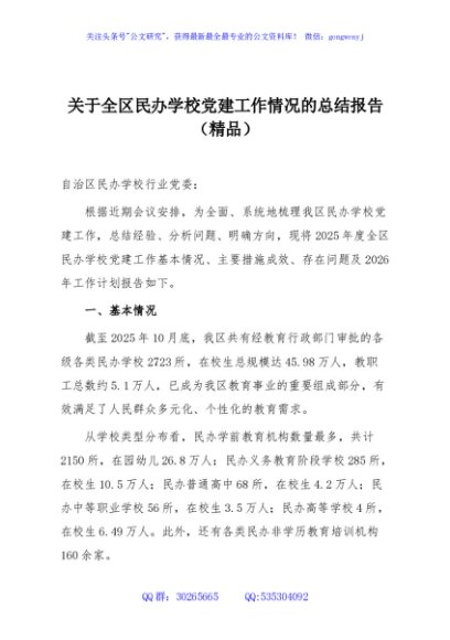 / 关于全区民办学校党建工作情况的总结报告(精品)