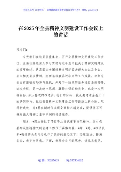 / 在2025年全县精神文明建设工作会议上的讲话