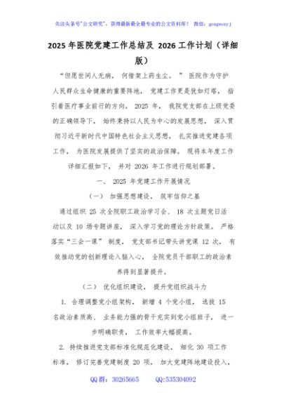/ 2025 年医院党建工作总结及 2026 工作计划(详细版)