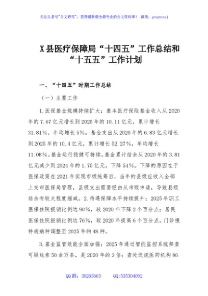 / X县医疗保障局“十四五”工作总结和“十五五”工作计划