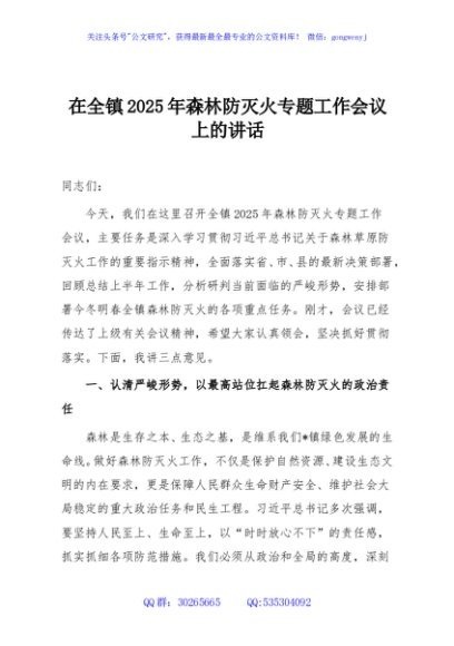 / 在全镇2025年森林防灭火专题工作会议上的讲话
