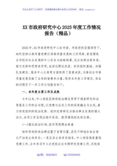 / XX市政府研究中心2025年度工作情况报告(精品)