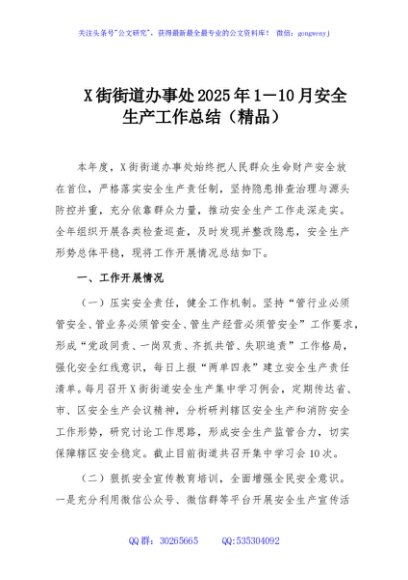 / X街街道办事处2025年1-10月安全生产工作总结(精品)