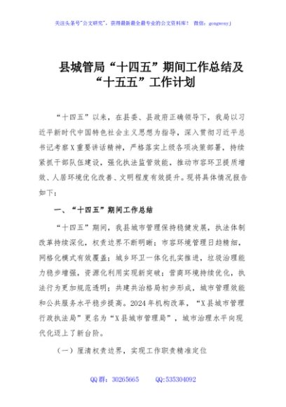 / 县城管局“十四五”期间工作总结及“十五五”工作计划
