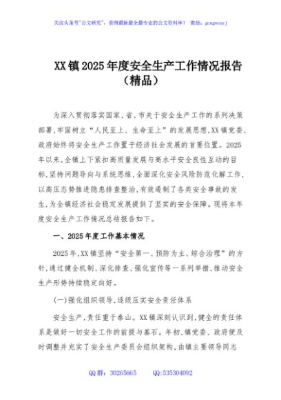 / XX镇2025年度安全生产工作情况报告(精品)