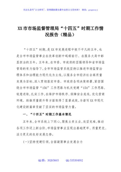 / XX市市场监督管理局“十四五”时期工作情况报告(精品)
