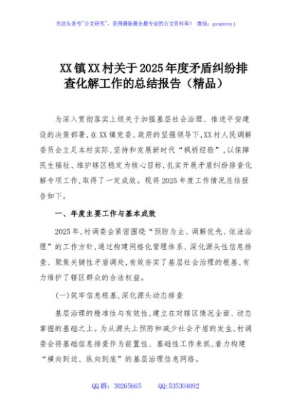 XX镇XX村关于2025年度矛盾纠纷排查化解工作的总结报告(精品)