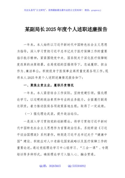 / 某副局长2025年度个人述职述廉报告