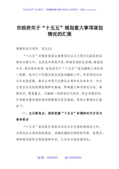 / 市政府关于“十五五”规划重大事项谋划情况的汇报