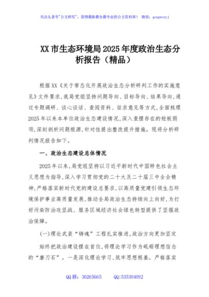 / XX市生态环境局2025年度政治生态分析报告(精品)