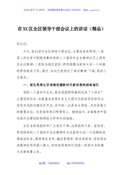 / 在XX区全区领导干部会议上的讲话(精品)