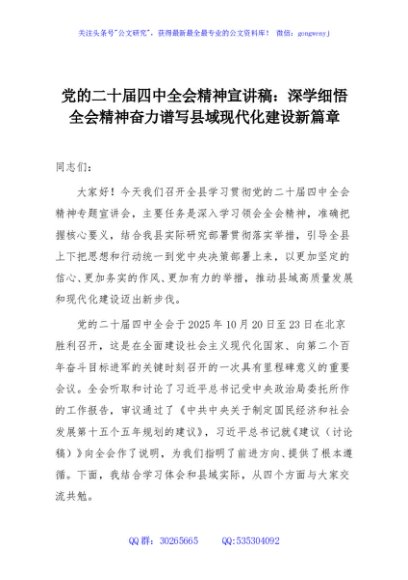 / 党的二十届四中全会精神宣讲稿:深学细悟全会精神奋力谱写县域现代化建设新篇章