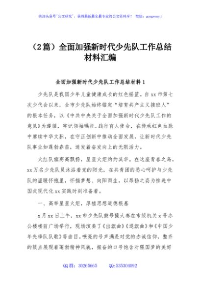 / (2篇)全面加强新时代少先队工作总结材料汇编