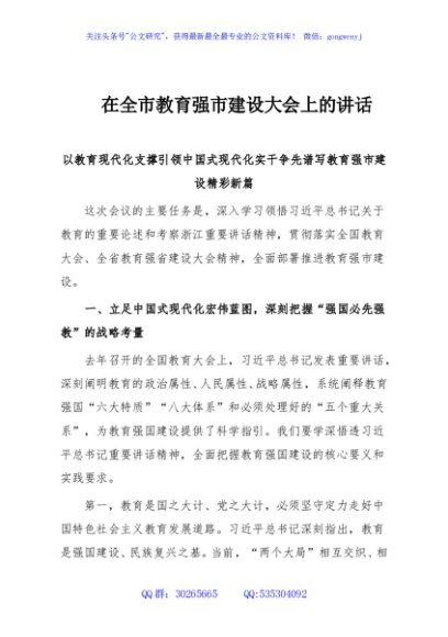 / 在全市教育强市建设大会上的讲话