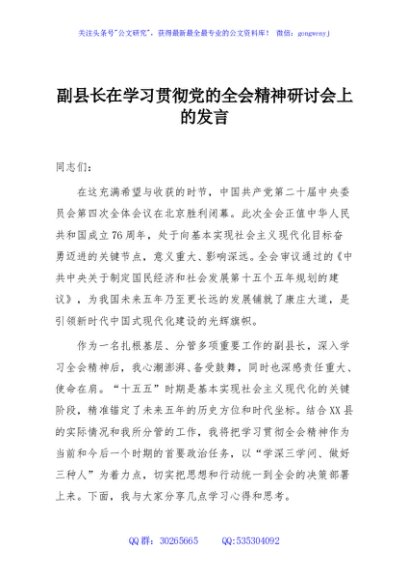 / 副县长在学习贯彻党的全会精神研讨会上的发言