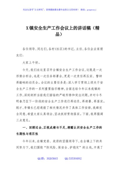 / X镇安全生产工作会议上的讲话稿(精品)