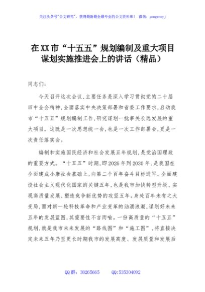 / 在XX市“十五五”规划编制及重大项目谋划实施推进会上的讲话(精品)