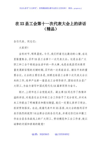 / 在XX县工会第十一次代表大会上的讲话(精品)