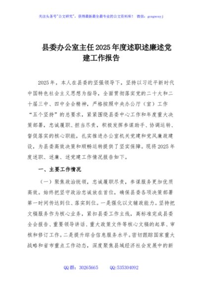 / 县委办公室主任2025年度述职述廉述党建工作报告