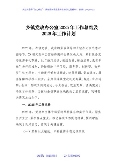 乡镇党政办公室2025年工作总结及2026年工作计划