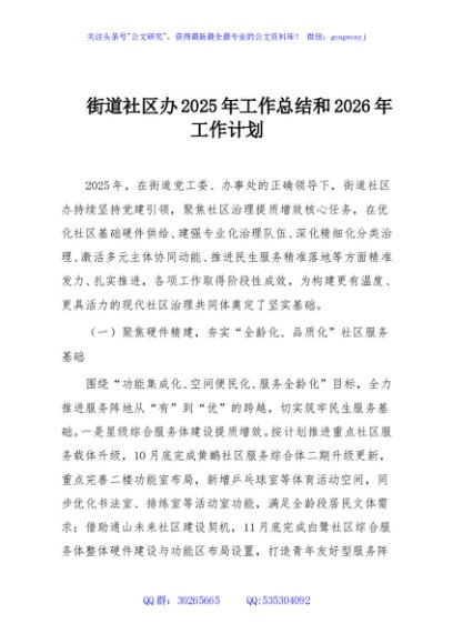 / 街道社区办2025年工作总结和2026年工作计划