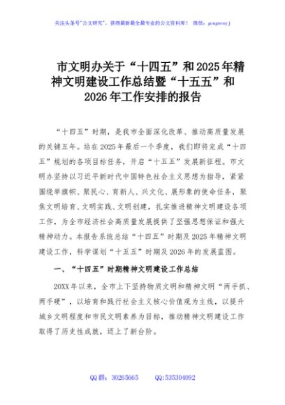 / 市文明办关于“十四五”和2025年精神文明建设工作总结暨“十五五”和2026年工作安排的报告