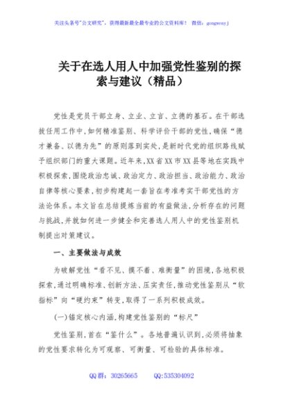 / 关于在选人用人中加强党性鉴别的探索与建议(精品)