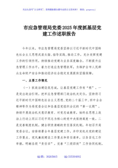 / 市应急管理局党委2025年度抓基层党建工作述职报告