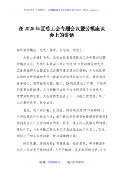 / 在2025年区总工会专题会议暨劳模座谈会上的讲话