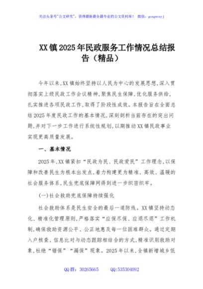 / XX镇2025年民政服务工作情况总结报告(精品)