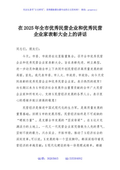 / 在2025年全市优秀民营企业和优秀民营企业家表彰大会上的讲话