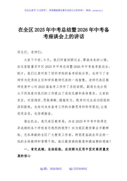 / 在全区2025年中考总结暨2026年中考备考座谈会上的讲话