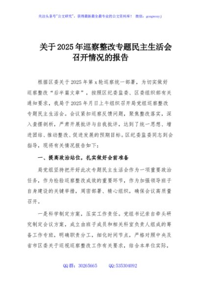 / 关于2025年巡察整改专题民主生活会召开情况的报告