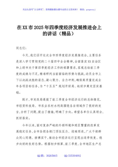 / 在XX市2025年四季度经济发展推进会上的讲话(精品)