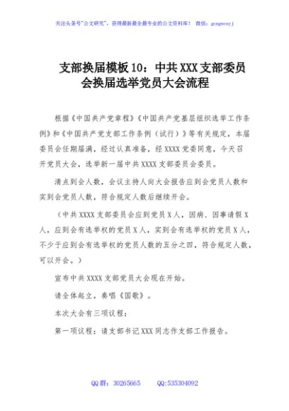 / 支部换届模板10:中共XXX支部委员会换届选举党员大会流程