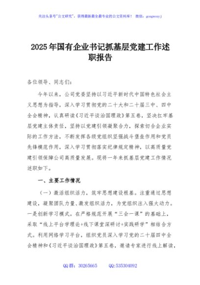 / 2025年国有企业书记抓基层党建工作述职报告